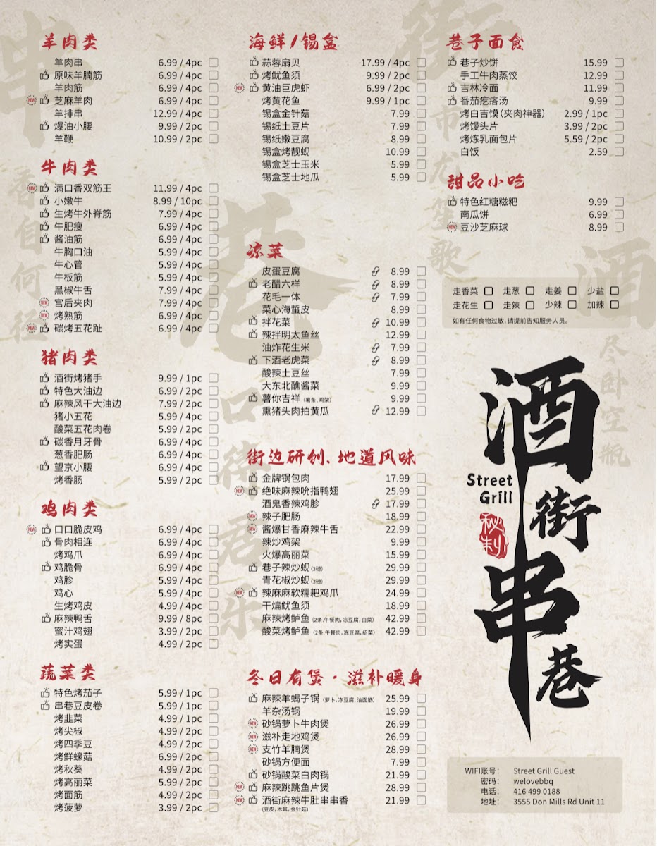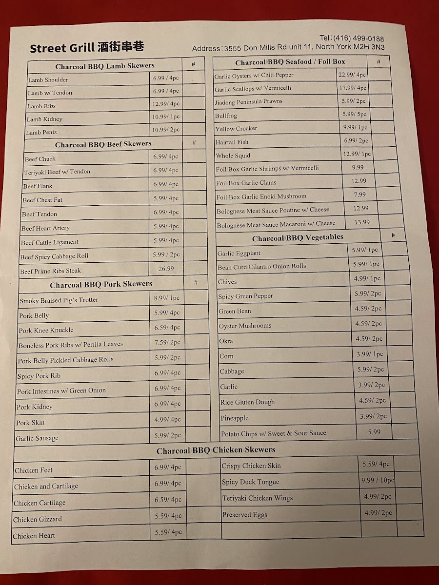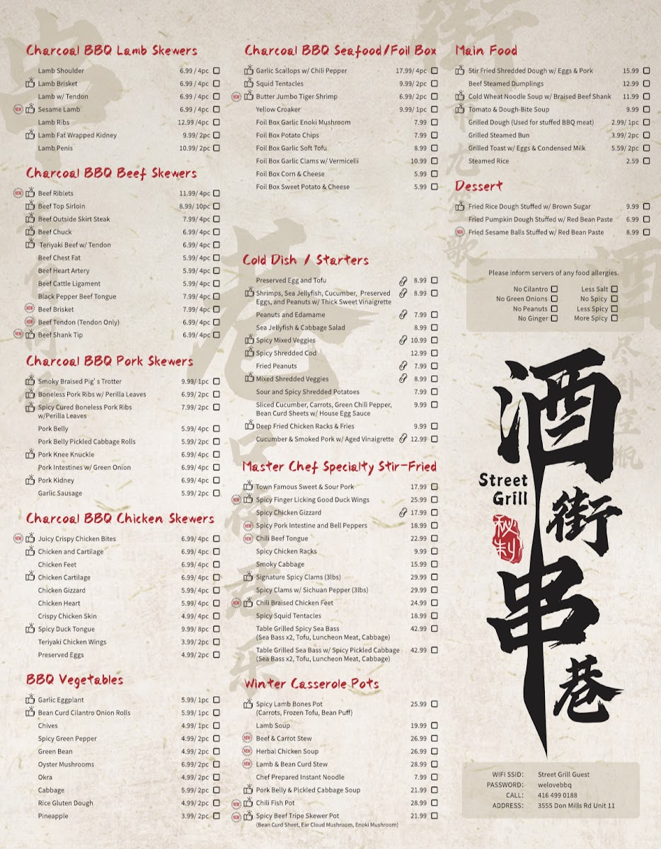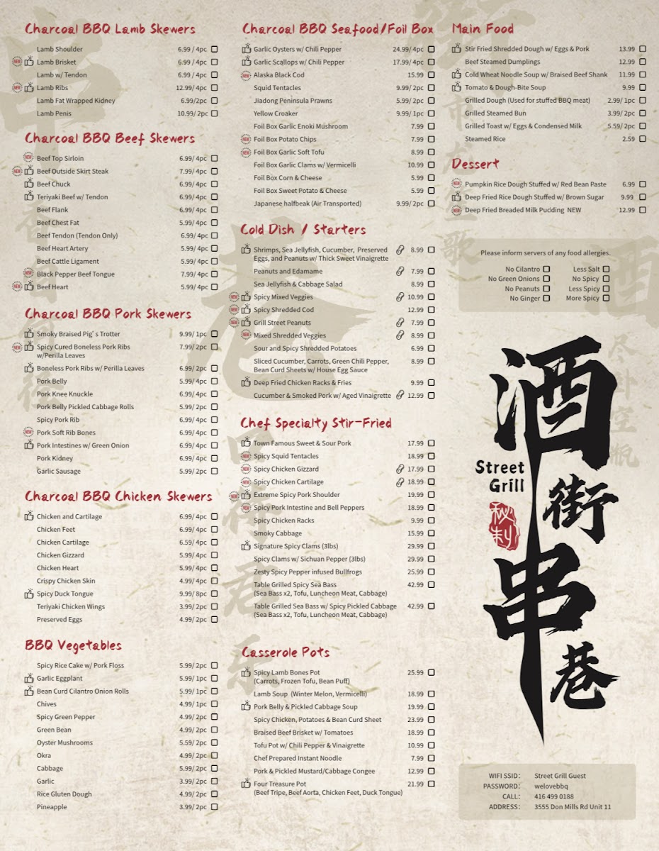 Welcome to Street Grill, your go-to destination for an authentic Chinese dining experience nestled at 3555 Don Mills Rd, unit 11, North York, ON M2H 3N3. Specializing in sizzling skewers and exotic flavors, this charming eatery is sure to captivate your taste buds and leave you craving more.