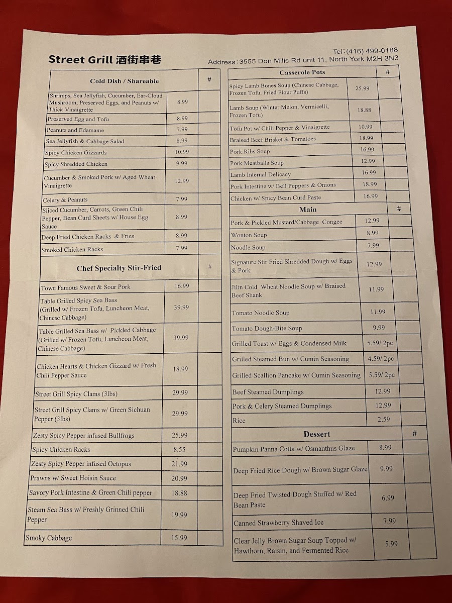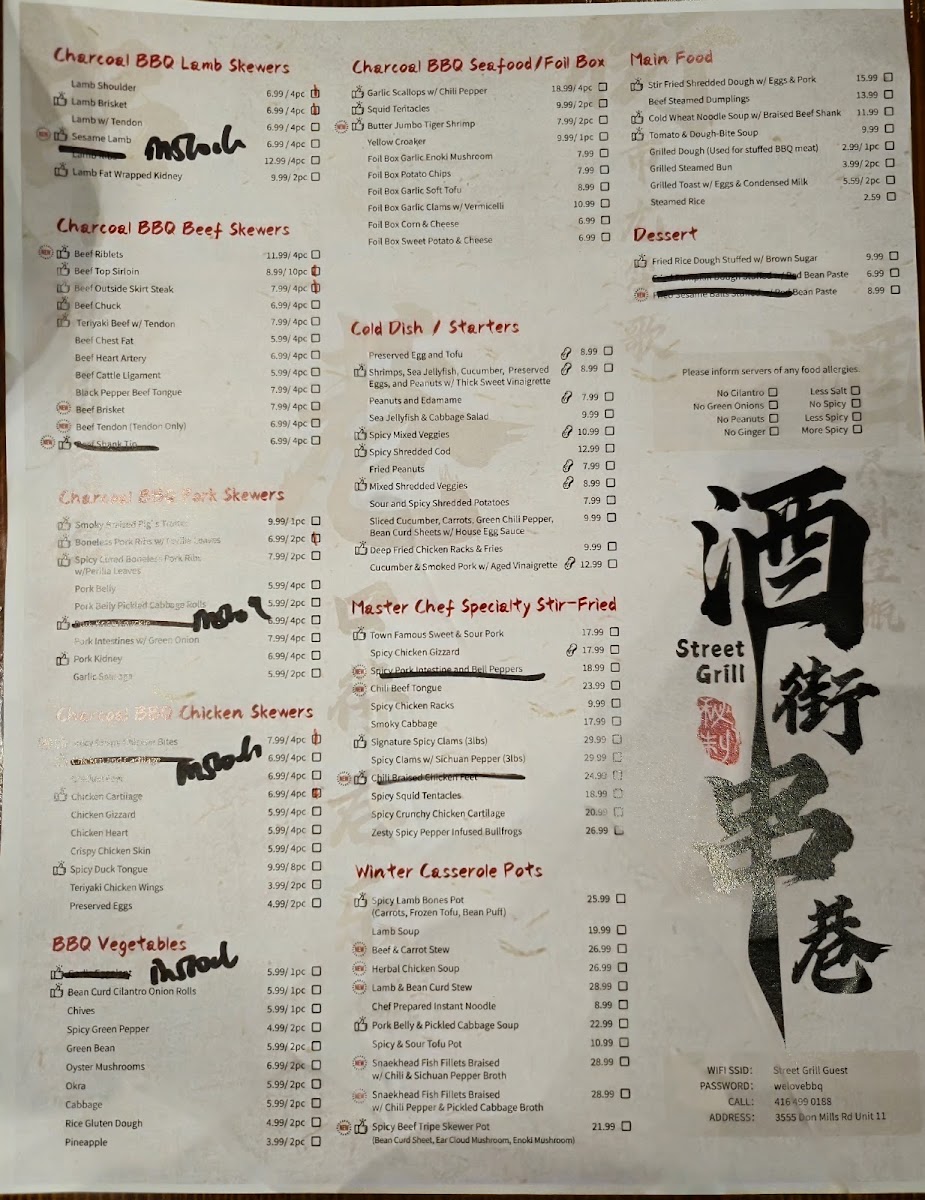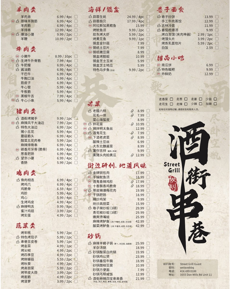 Welcome to Street Grill, your go-to destination for an authentic Chinese dining experience nestled at 3555 Don Mills Rd, unit 11, North York, ON M2H 3N3. Specializing in sizzling skewers and exotic flavors, this charming eatery is sure to captivate your taste buds and leave you craving more.