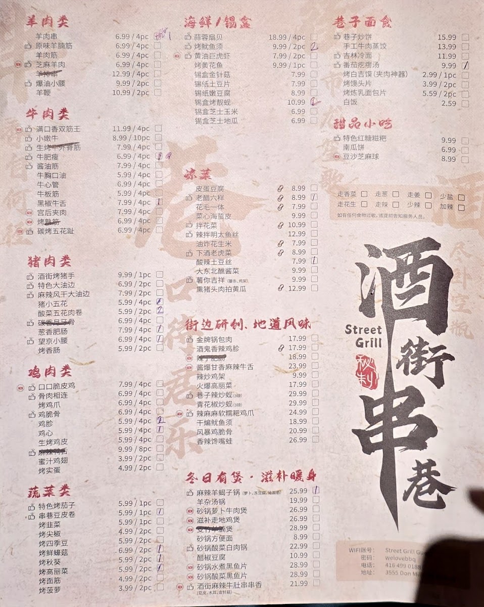 In conclusion, Street Grill is not just a meal; it’s an experience filled with culture, flavor, and warm hospitality. Whether you're gathering with friends for a casual night out or enjoying a flavorful feast with family, it is sure to impress not just with its menu but with its great vibe and ambiance. Consider this your invitation to discover the artistry of Chinese barbecue and skewer mastery at Street Grill—where every bite tells a delicious story.